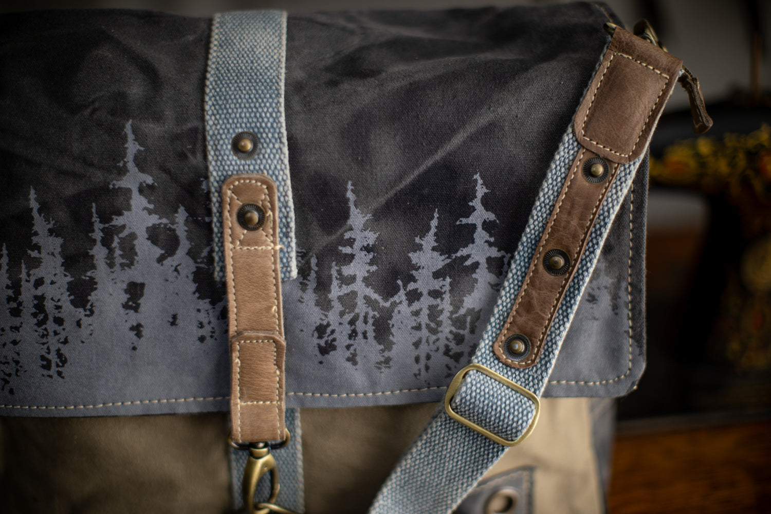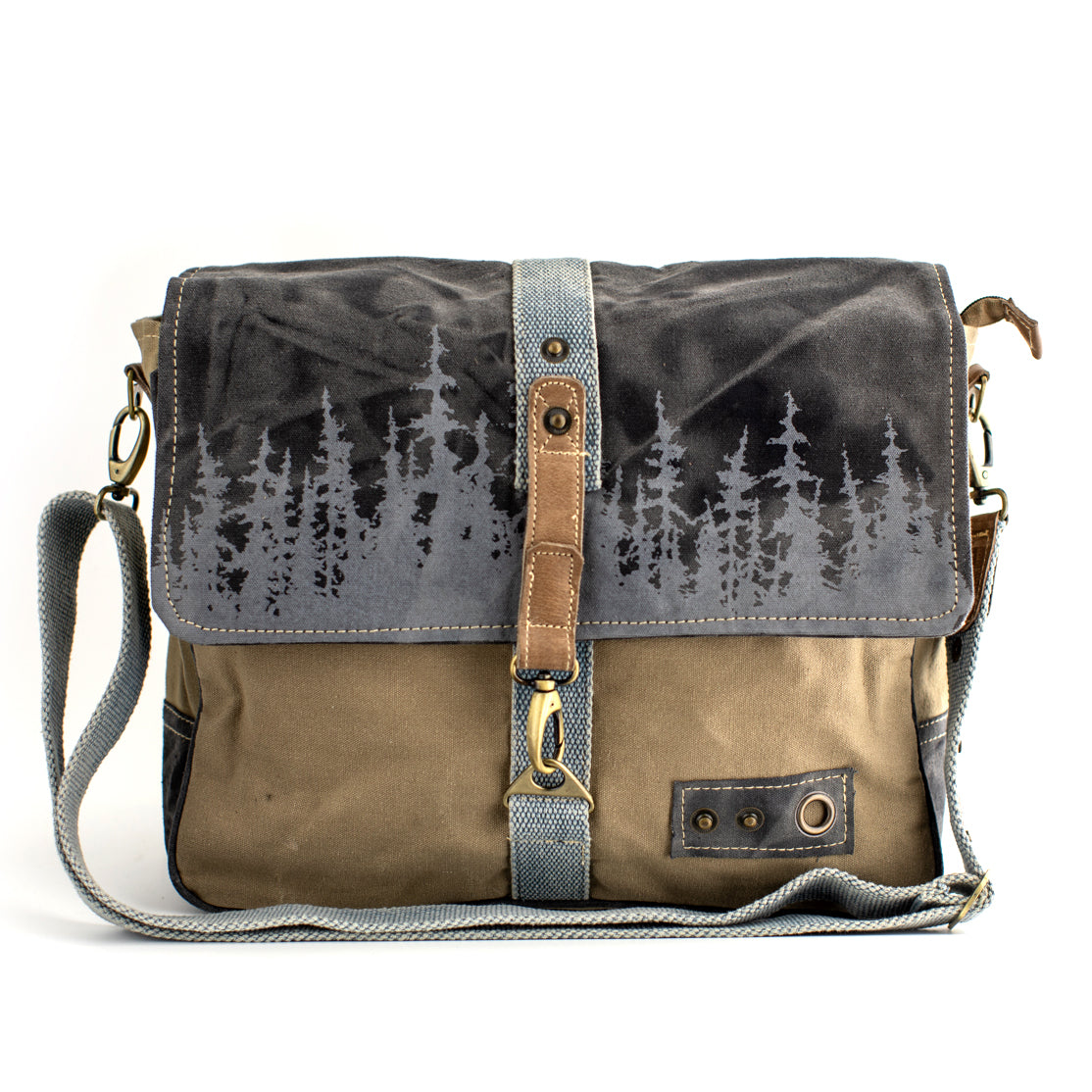 The Black Spruce Recycled Medium Canvas Laptop Bag offers both functionality and style, making it the perfect companion for work or travel. Crafted from durable recycled canvas, with genuine leather trim and brass hardware, this bag is designed to carry your essentials with ease.