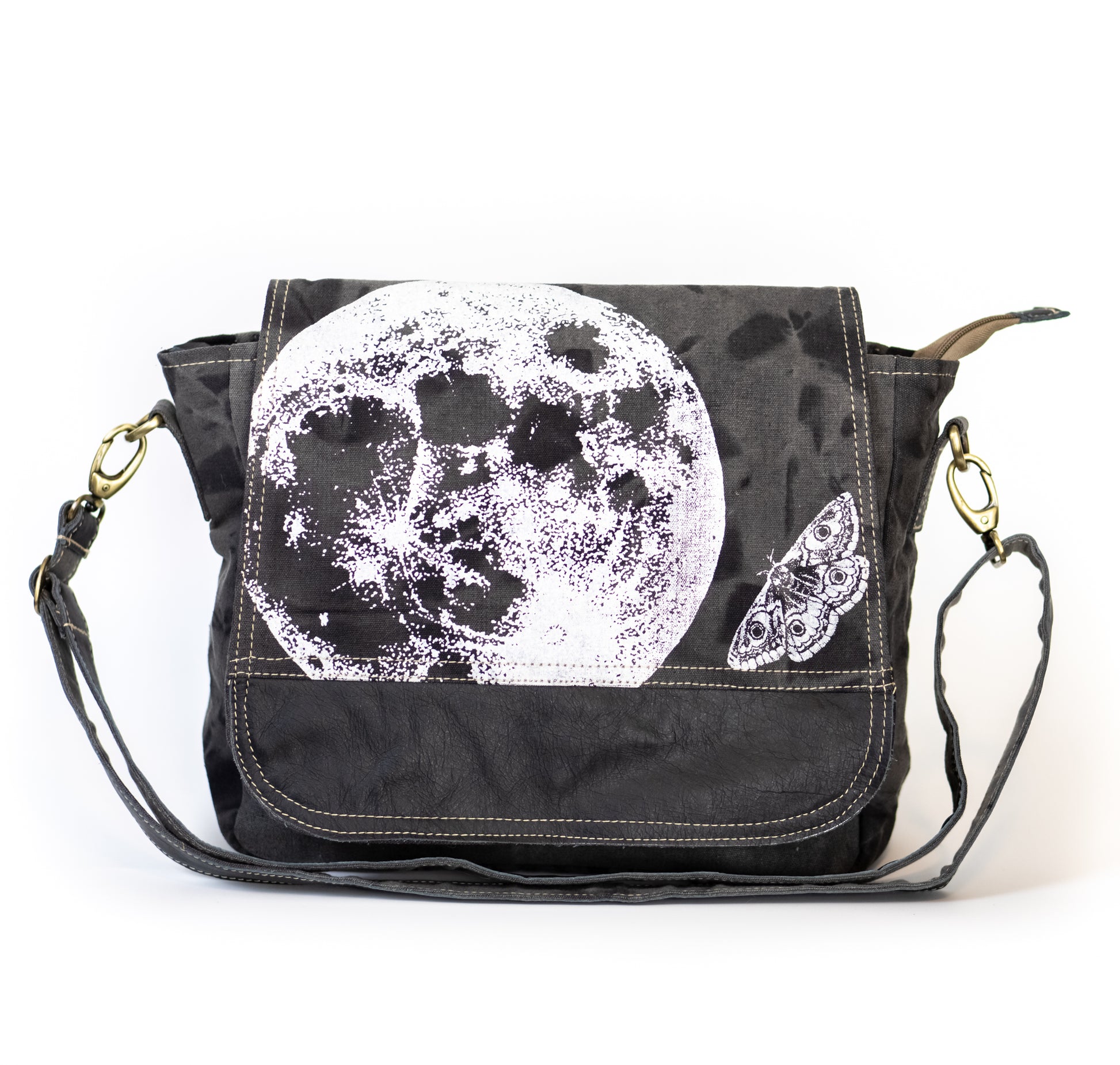 Lunar Moth Recycled Canvas Saddle Bag